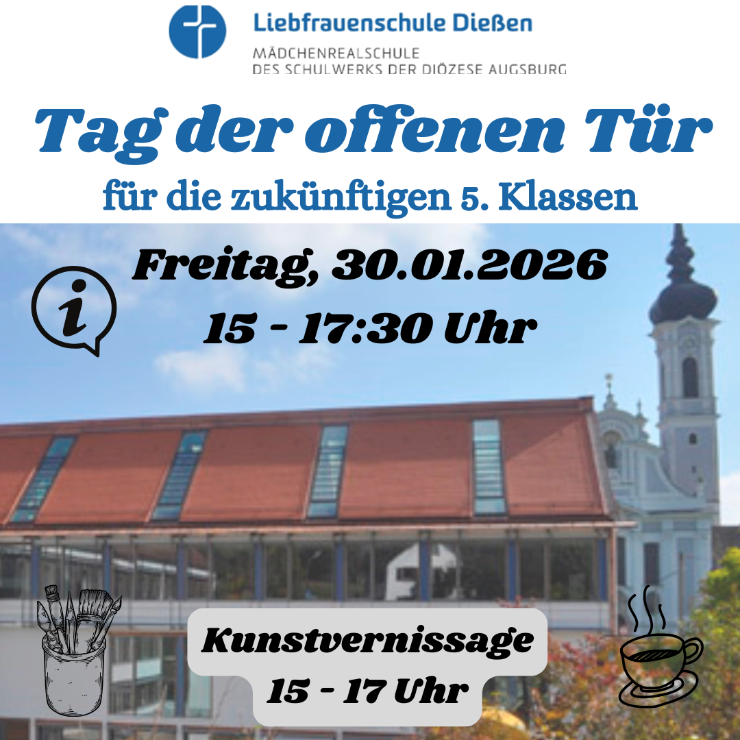 Am Freitag, 30.01.2026, findet von 15 bis 17:30 Uhr der Tag der offenen Tür für die zukünftigen 5. Klassen statt. Neben Infoveranstaltungen für Eltern und Schülerinnen sind verschiedene Aktivitäten sowie Schulhausführungen geboten.